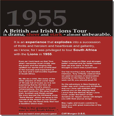 2001 Lions Tour. The age of the choristers ranges from 23 – 88 and they share a